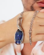 Lapis lazuli is a semi-precious stone of intense blue with white veins and golden flecks. Beyond its beauty, it is symbolically associated with communication, wisdom, and intuition, helping to express inner truth, bring mental clarity, and act as energetic protection. For this reason, it is widely used in both handcrafted pieces and spiritual practices.