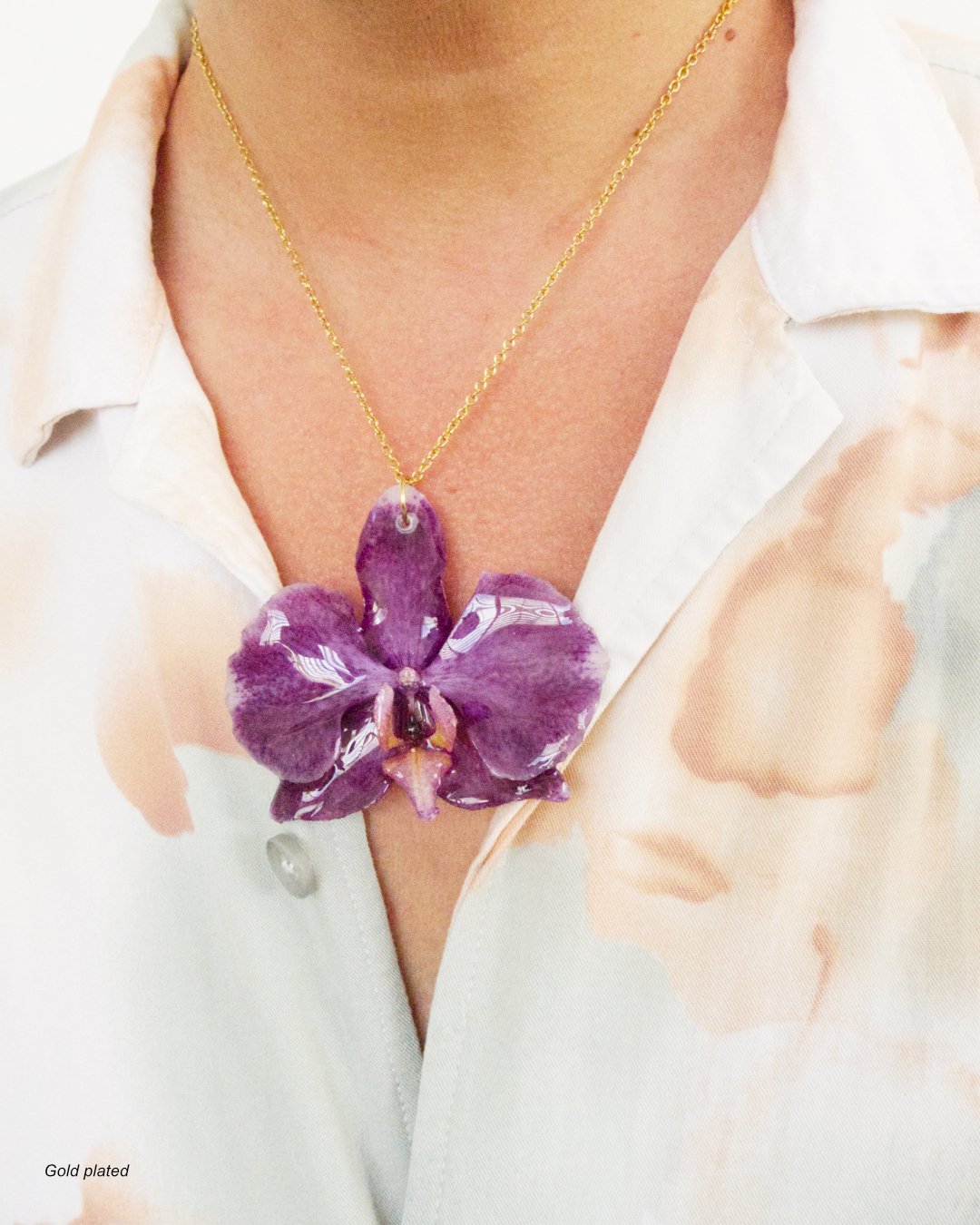 Variety of necklaces available. Preserved and encapsulated orchids.