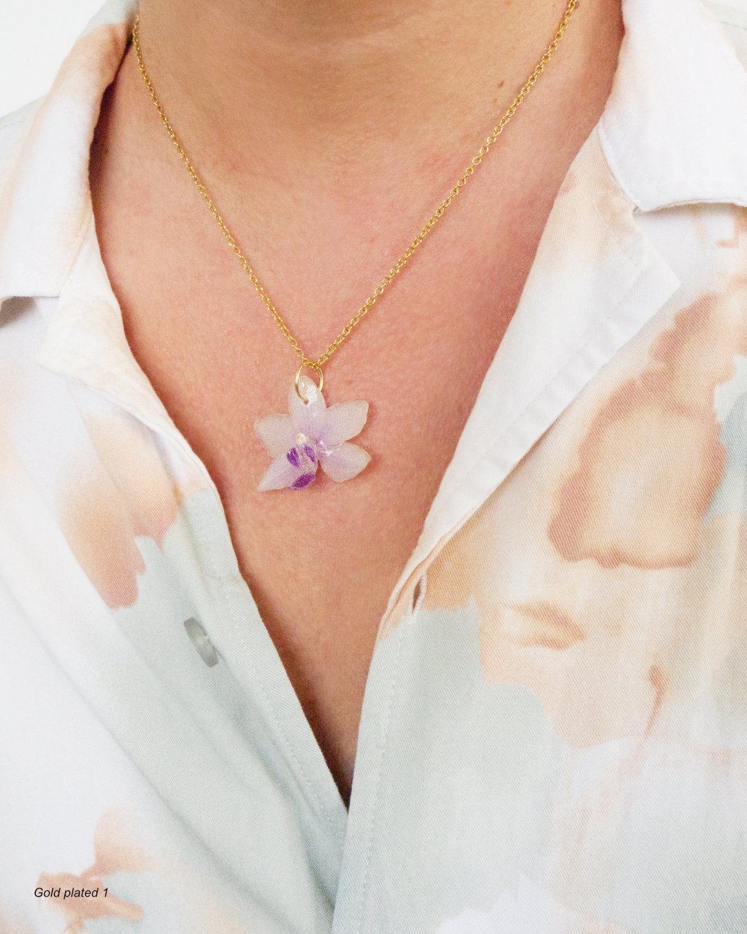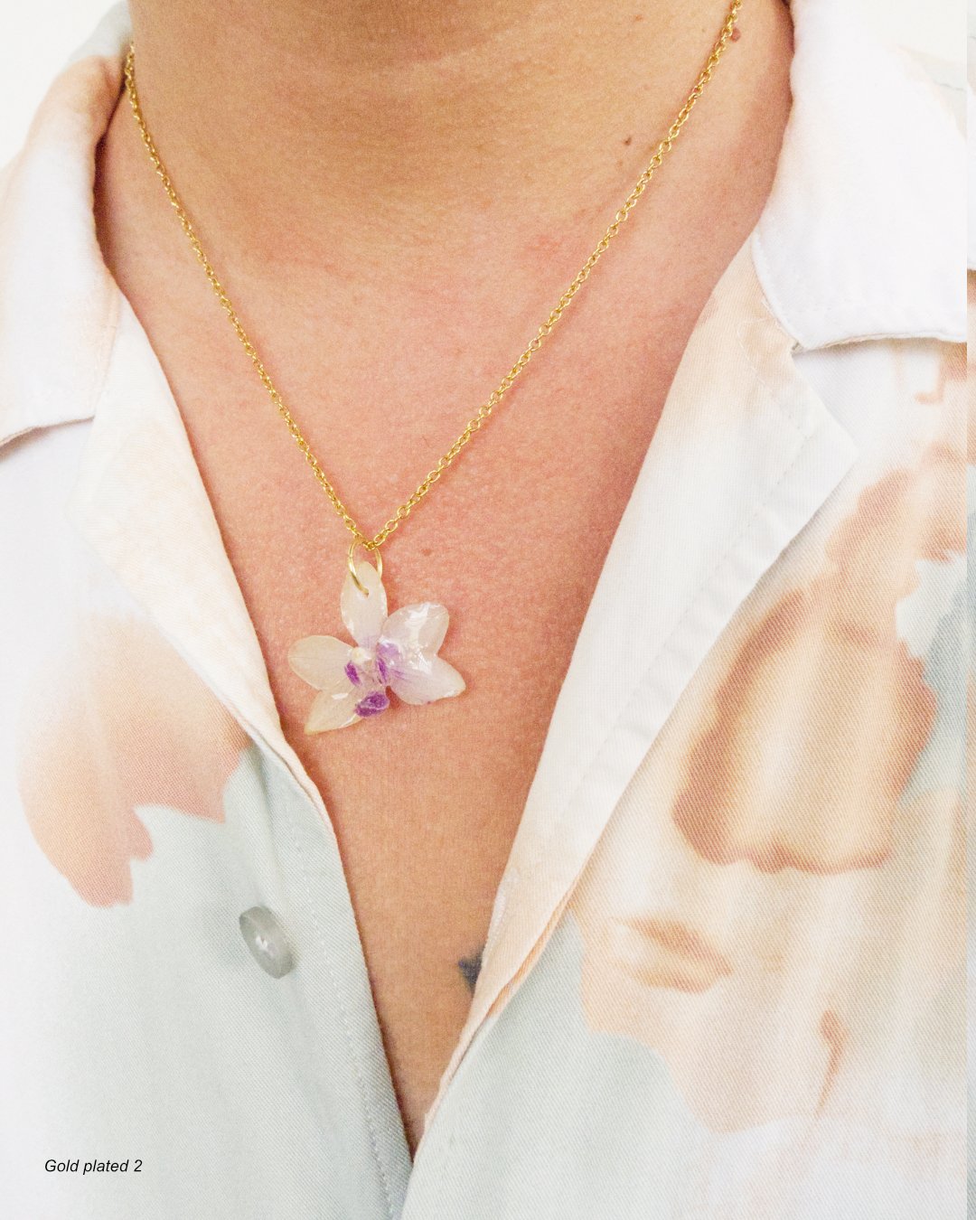 Variety of necklaces available. Preserved and encapsulated orchids.