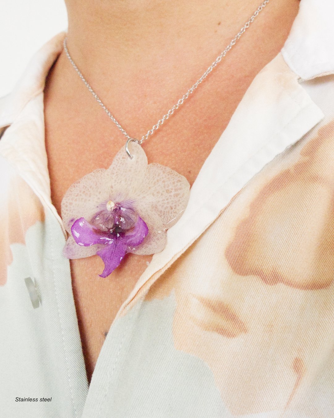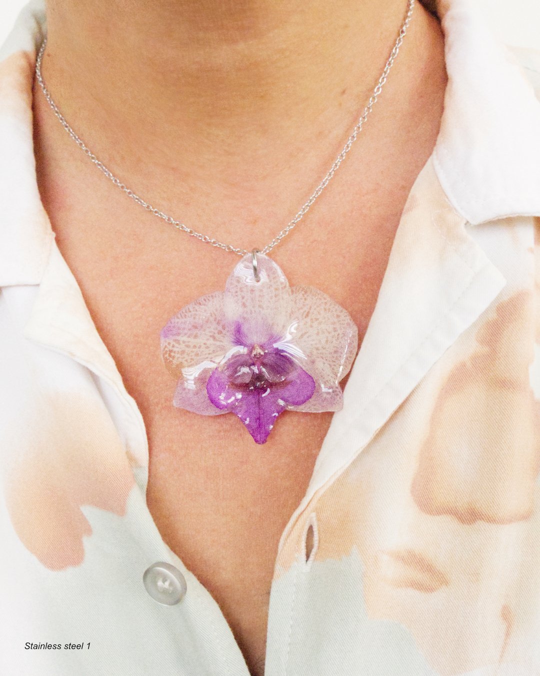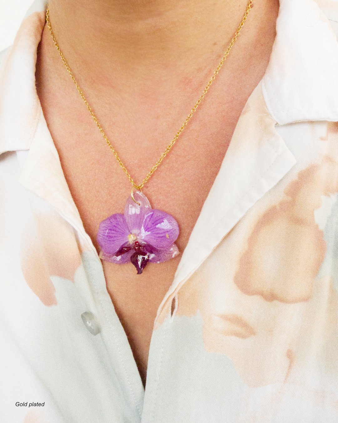 Variety of necklaces available. Preserved and encapsulated orchids.