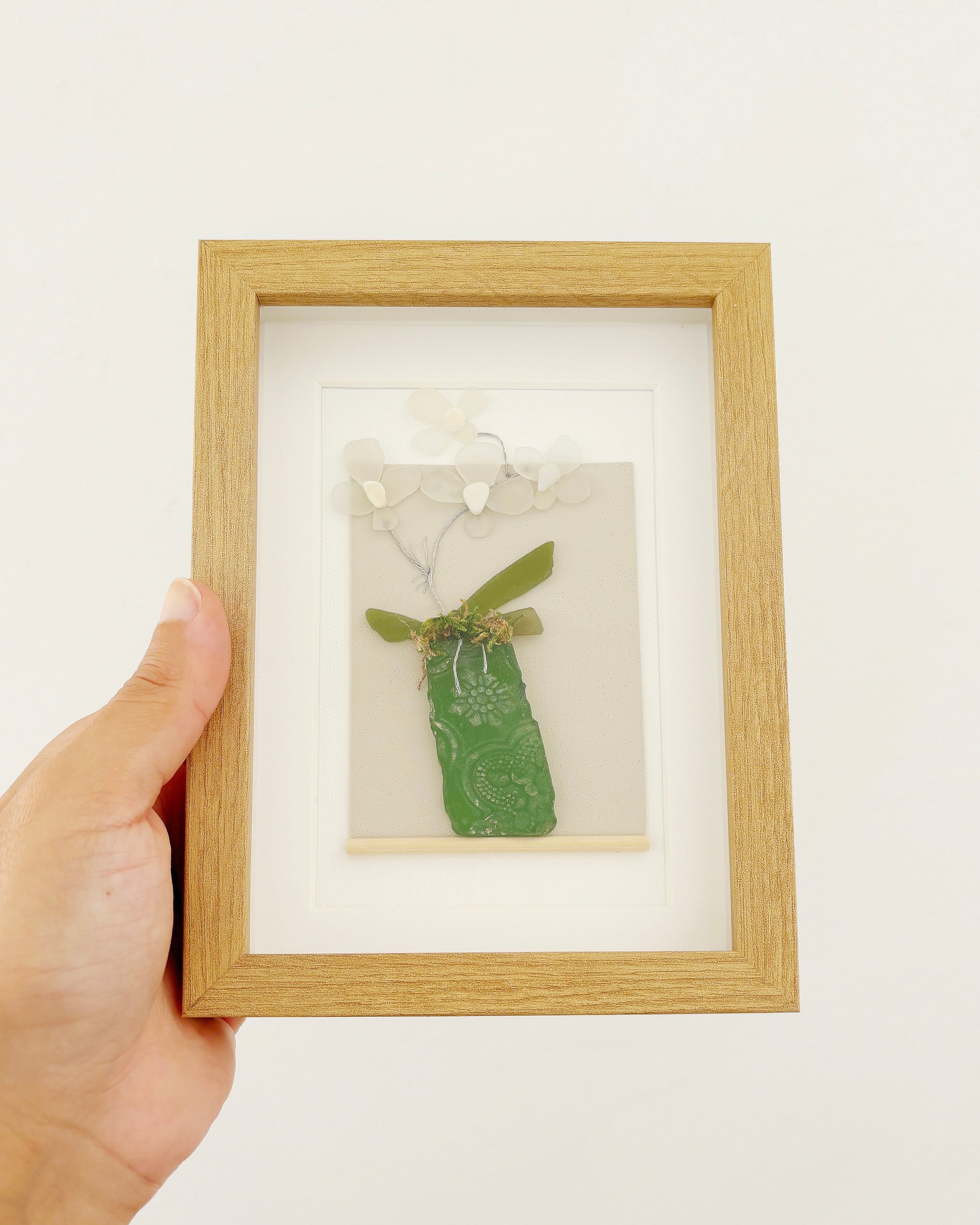 Estampa inspirada en las orquídeas "Phalaenopsis" blancas. Desechos de mar encontrados en nuestras playas y el concepto e idea trabajado para tener inspiración de orquídas hechas con desechos de mar.